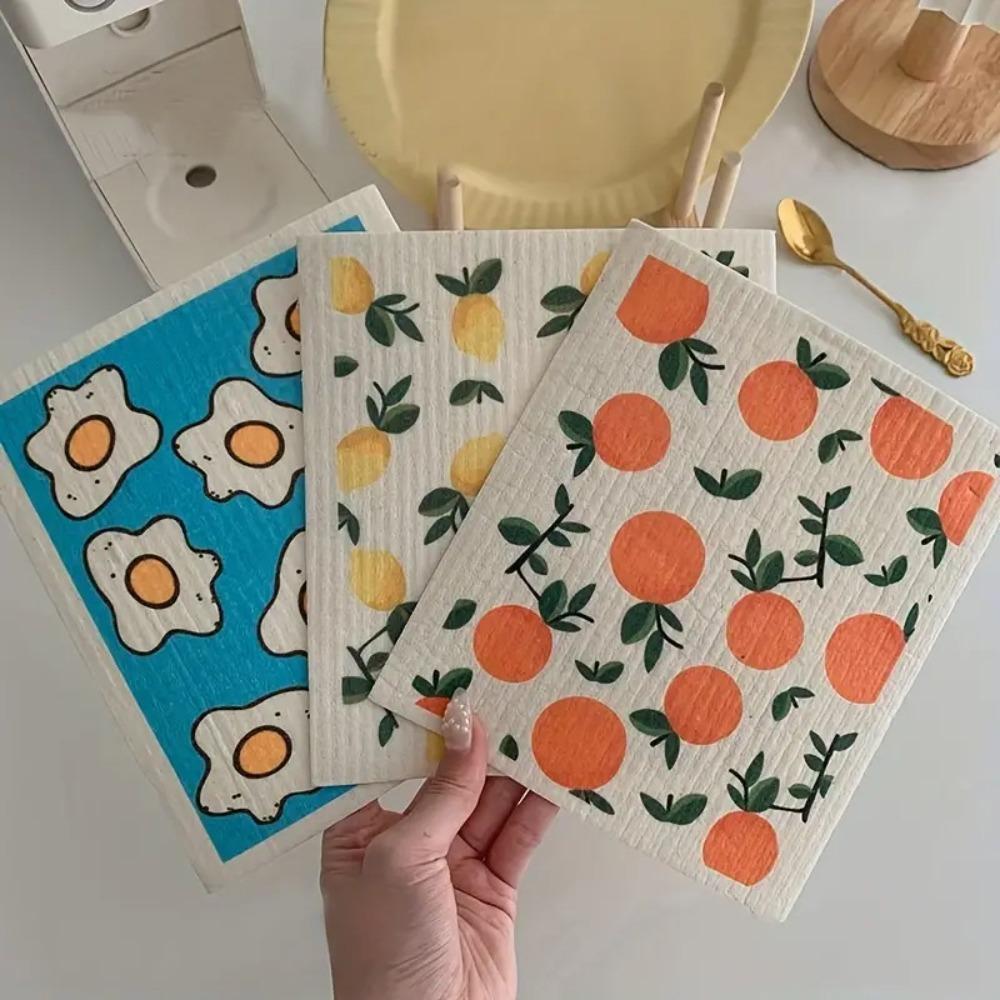 3 шт. печатная целлюлозная губчатая ткань многоразовая тряпка для мытья посуды высокого качества шведские полотенца Style B