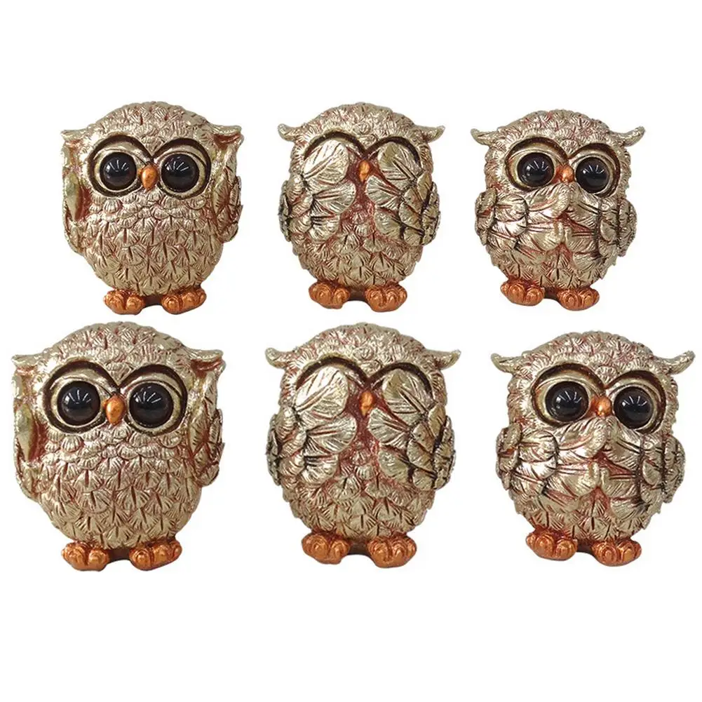3 шт., статуя Совы из смолы, Настольная Изысканная декоративная мини-скульптура, модель игрушки, бонсай, домашнее украшение, миниатюрная фигу...