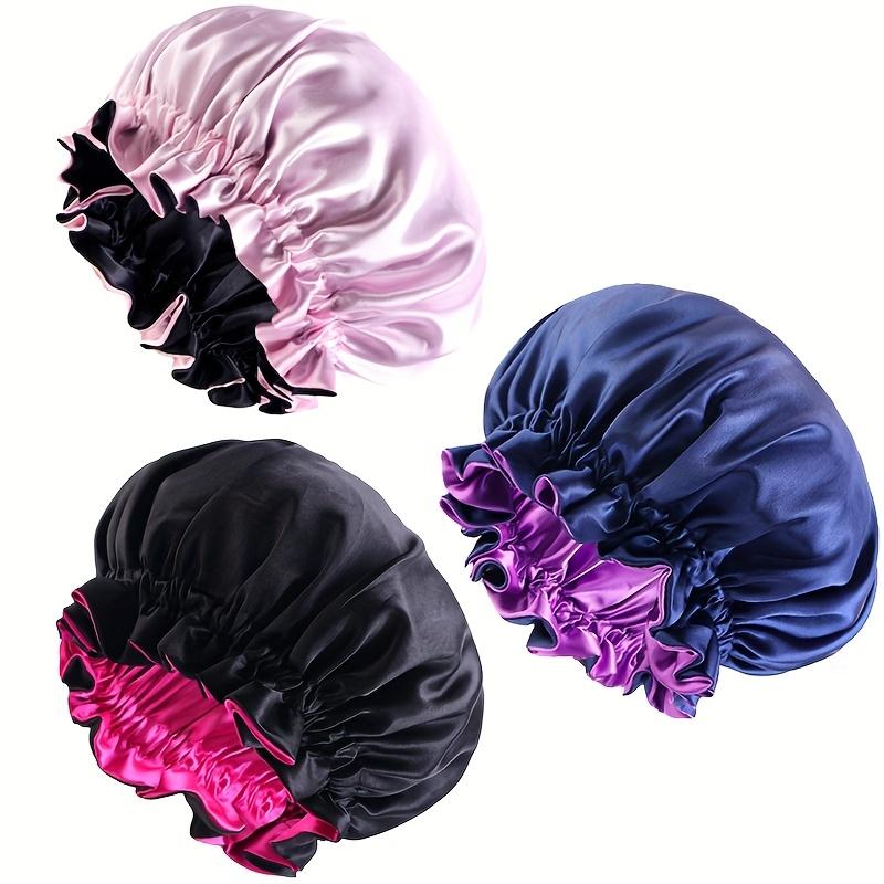 3 шт. элегантных атласных шапочек для сна с оборками - двухслойные, эластичные, стильные и удобные для использования ночью или в душе