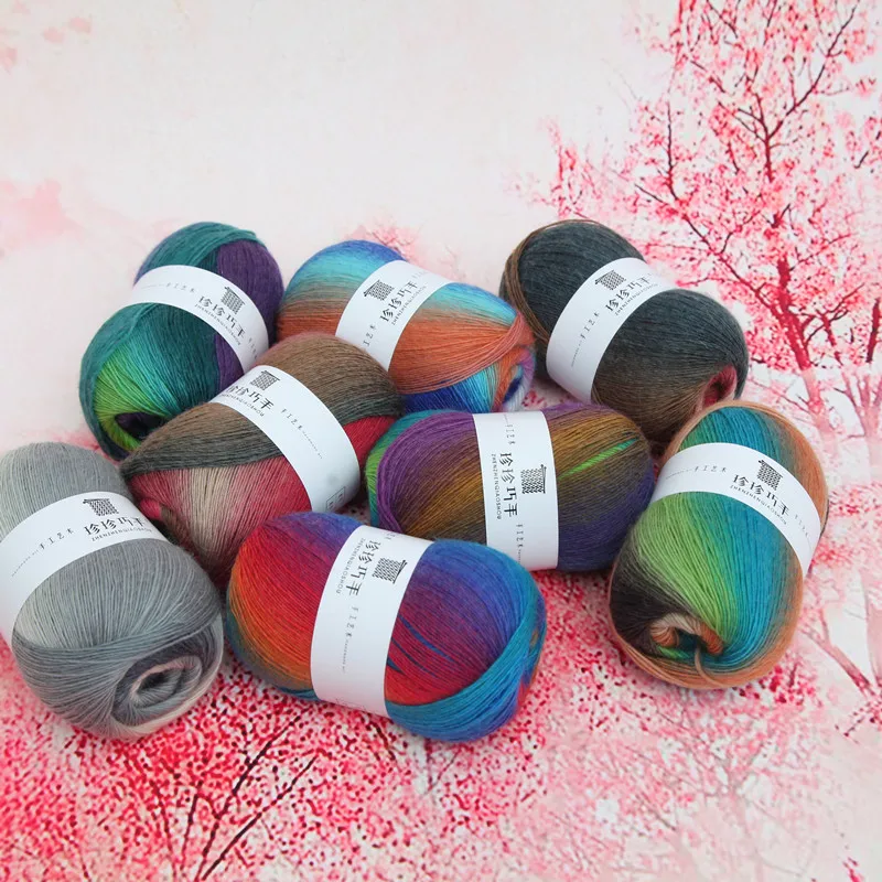 3 шт., 100 г/шариковая шерстяная Радужная окрашенная Женская шаль, материал для вязания крючком, радужная линия, шапка, шарф, пряжа для вязания