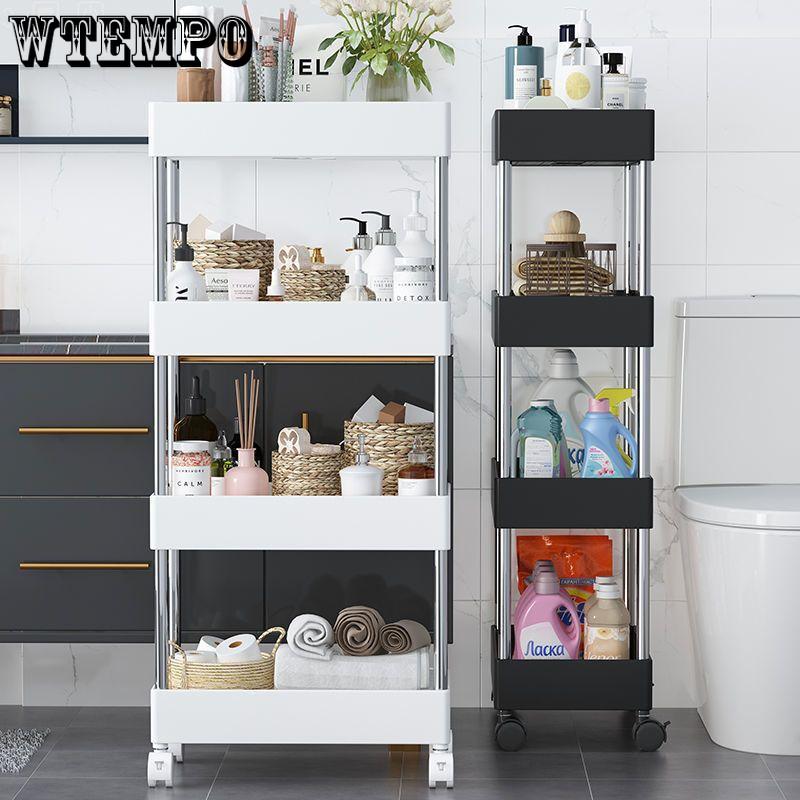 3/4-слойная узкая стойка для хранения, полки для кухни, ванной комнаты, органайзер, мобильная тонкая тележка для хранения с колесной тележкой, экономия места