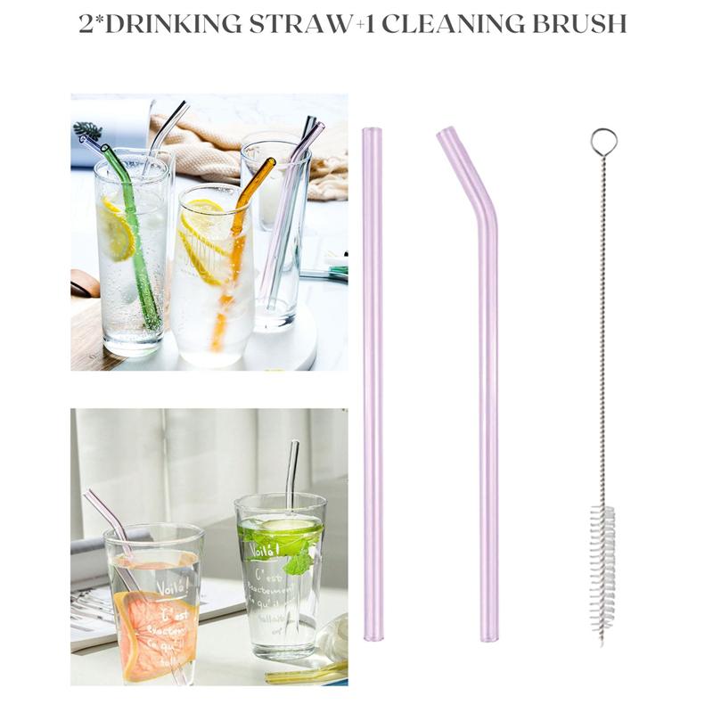 3/4 шт. цветная стеклянная соломинка для коктейля, молочного чая, прямая, изогнутая, экологичная, многоразовая, термостойкая, с чистящей щеткой