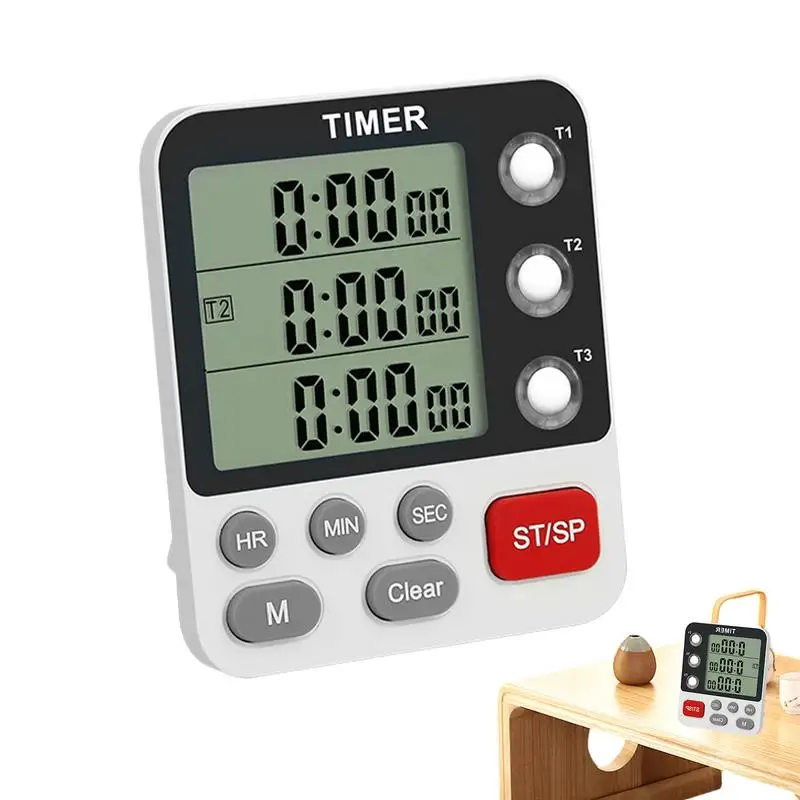 3 Channels Kitchen Timer Large Display Digital Timer 3 In 1 Countdown Clock Stopwatch Timer Alarm Clock Stopwatch For Cooking