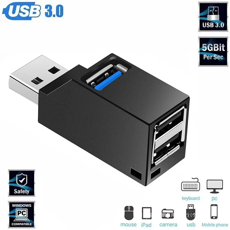 3 In 1 USB 3.0/2.0 HUB Adapter Extender Splitter Box 1 to 3 Ports Multi Function Reading Adapter For Laptops U Disk Card Reader