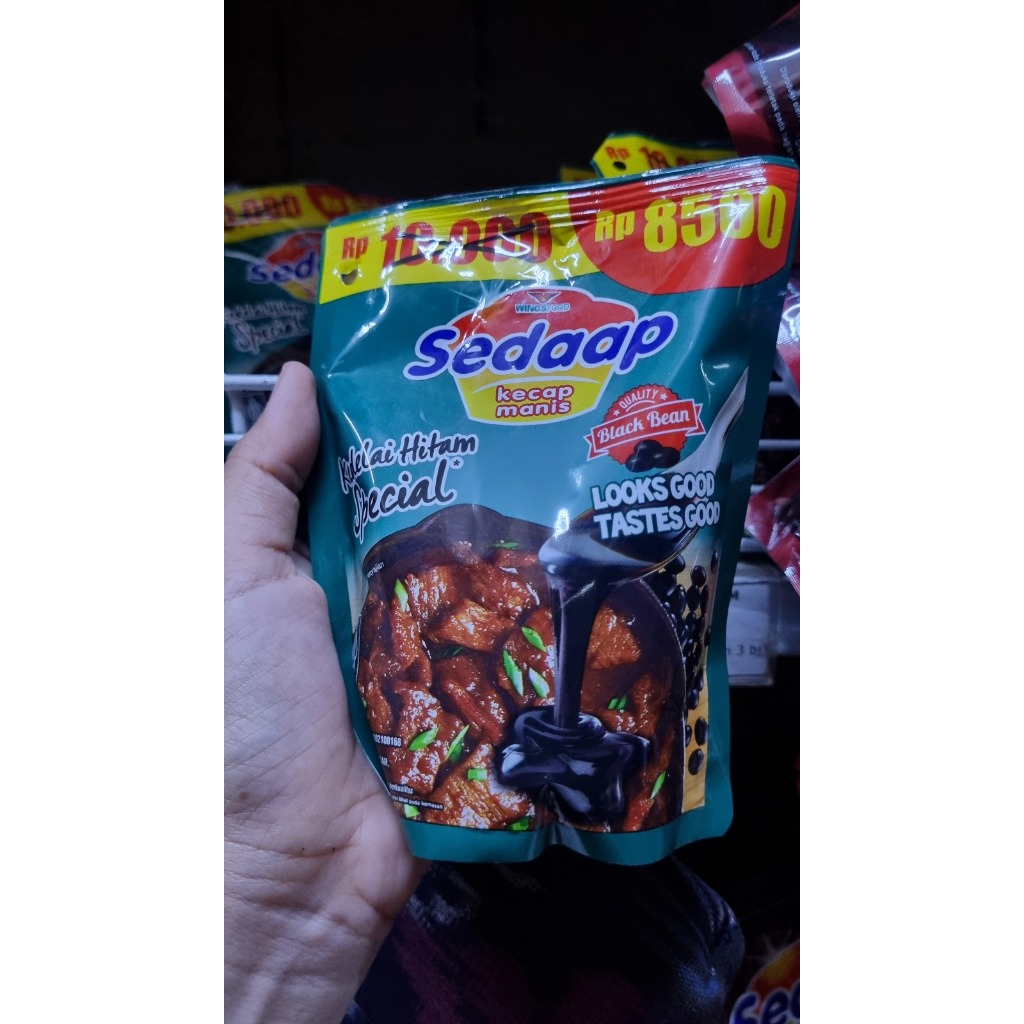 Sedaap Kecap Manis Kedelai Hitam Spesial refill pouch 200ml X 3pcs. Kecap Sedaap Kedelai Hitam Special dibuat dari kedelai hitam berkualitas. Dengan warna yang benar-benar hitam dan tekstur yang kental, kecap ini meresap sampai ke dalam masakan. Kecap Sedaap Kedelai Hitam Special membuat warna masakan menjadi caramelized dan menggugah selera.
