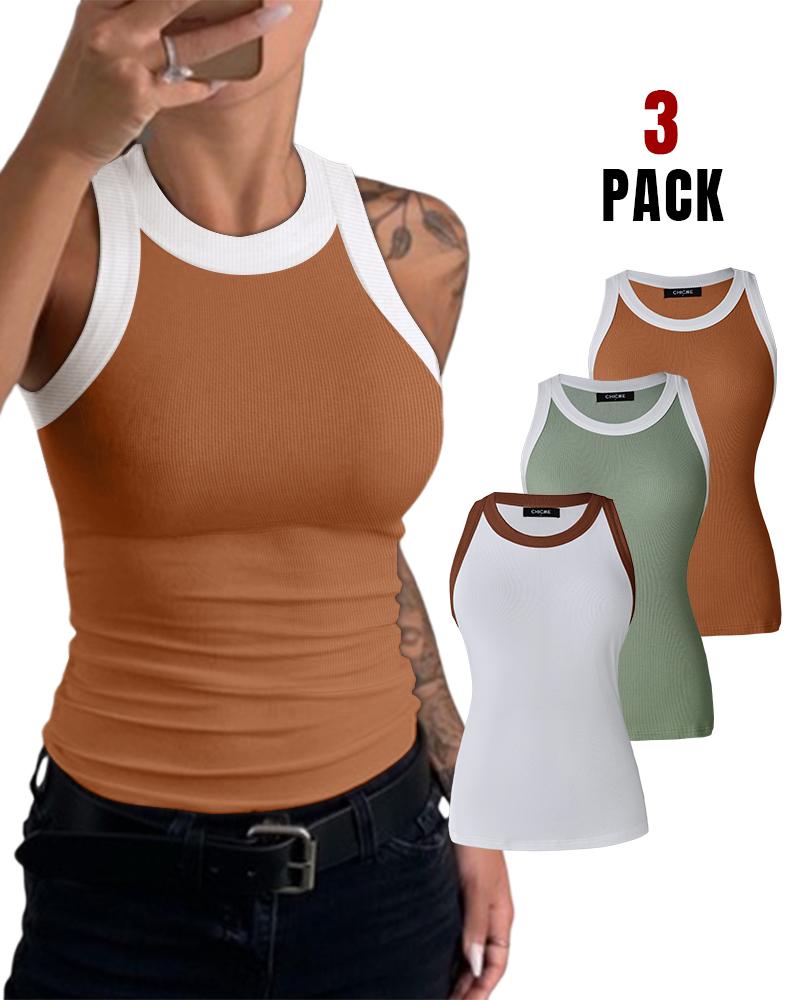 3-Pack Contrast Binding Basic Slim Knit Ribbed Racerback Tank Top, Style2