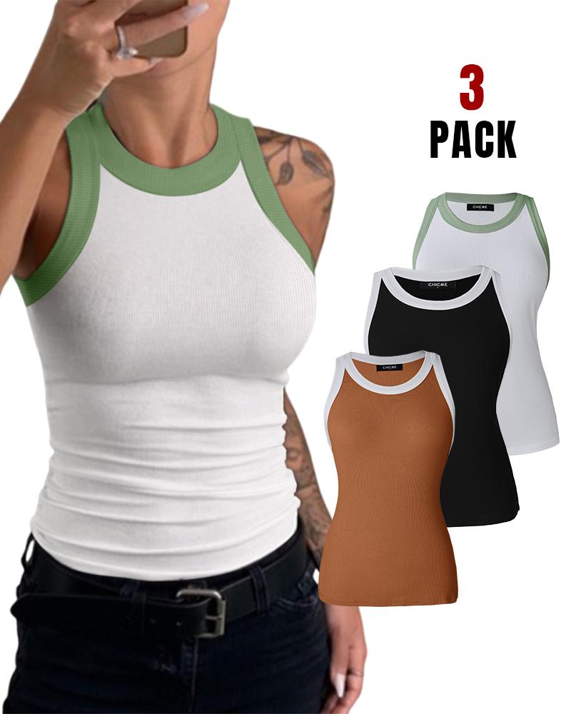 3-Pack Contrast Binding Basic Slim Knit Ribbed Racerback Tank Top, Style3