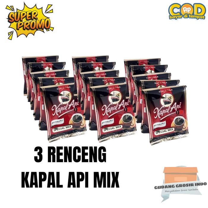 Kapal Api Special Mix 3 renceng adalah kopi bubuk instan yang berisi 30 sachet. Kopi ini terbuat dari biji kopi pilihan dan gula murni.