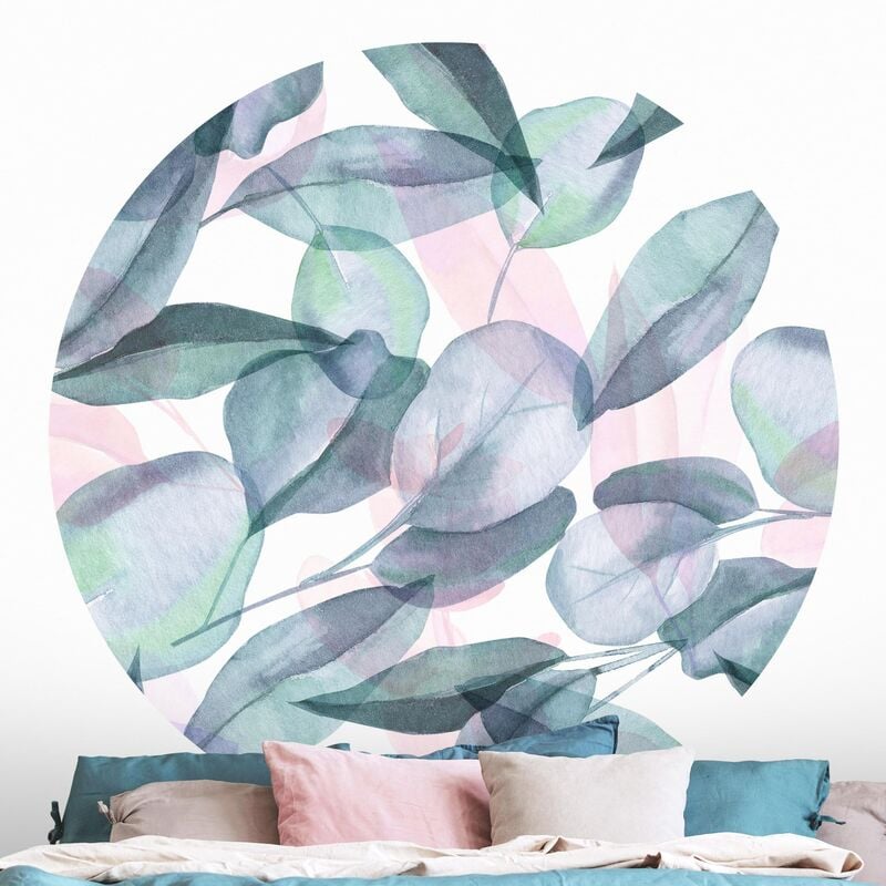 Papel pintado redondo autoadhesivo - Blue And Pink Eucalyptus Leaves Watercolor Dimensión LxA: 225cm x 225cm