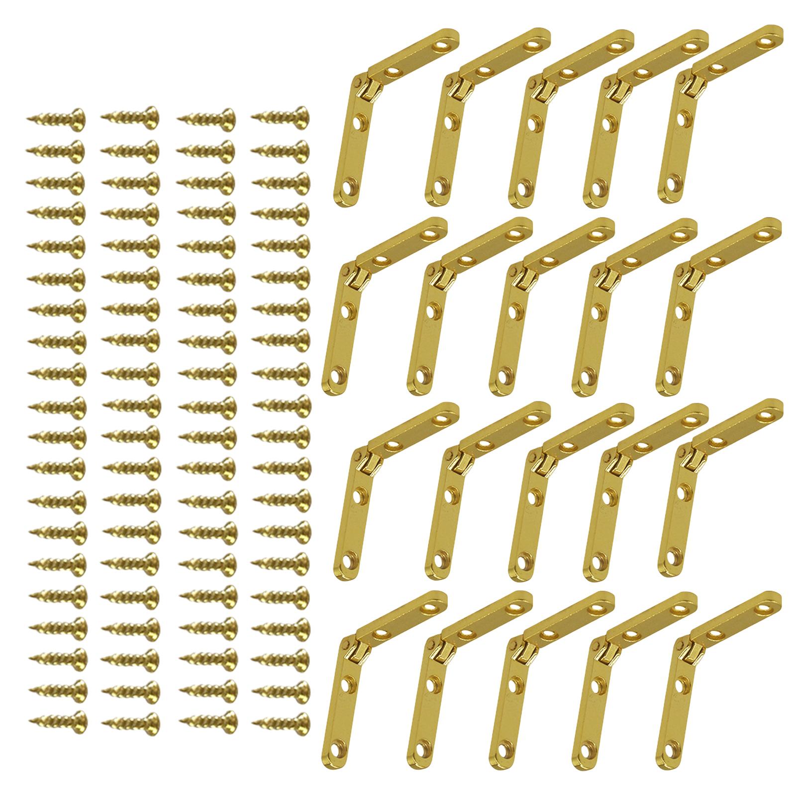 30 комплектов золотых 90-градусных петель с винтами, маленькие петли для сундуков, декоративные петли для деревянных шкатулок, ювелирных шкафов