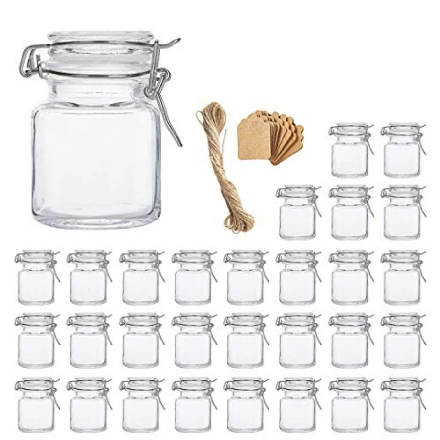30 упаковок квадратных стеклянных банок для специй объемом 3,5 унции с герметичной резиновой прокладкой и герметичной крышкой на петлях для хранения на кухне, идеально подходят для дома