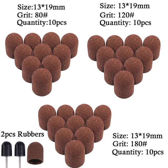 30 шт. колпачки для шлифовки ногтей с 2 шт. резинками для снятия гель-лака, сверла для ногтей, шлифовальная песочная лента для педикюра, маникюра, машины коричневый