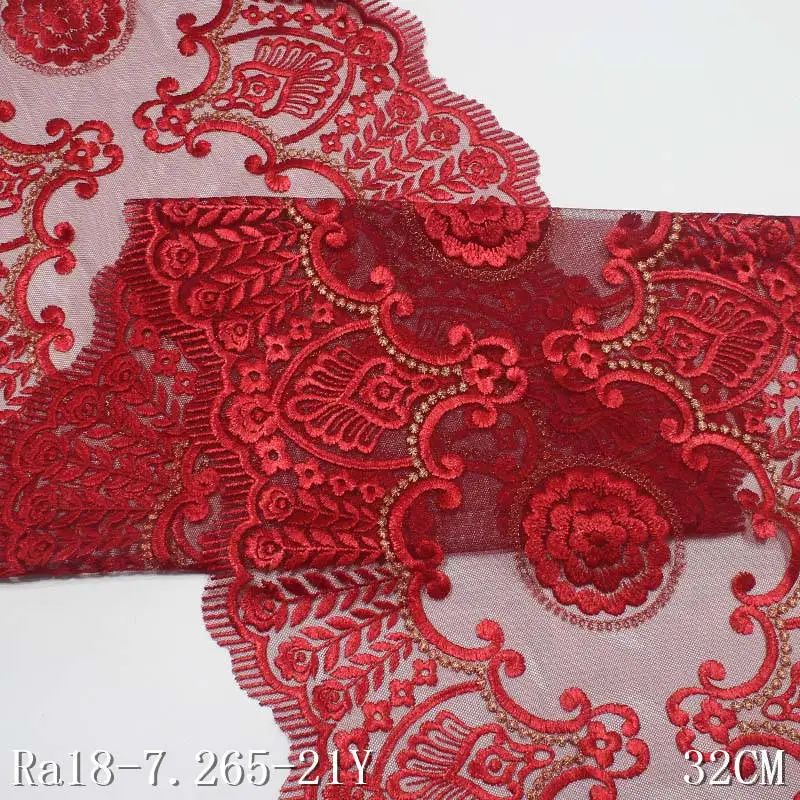 30 ярдов Двусторонняя вышитая кружевная отделка, Цветочная сетка, тюль для одежды, свадебного платья, шитья, «сделай сам», китайский стиль, ширина 32 см