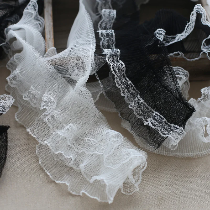 30 ярдов, белая, черная кружевная ткань, плиссированная Складная сетка, тюль для шитья, поделки «сделай сам», детское платье, одежда с оборками