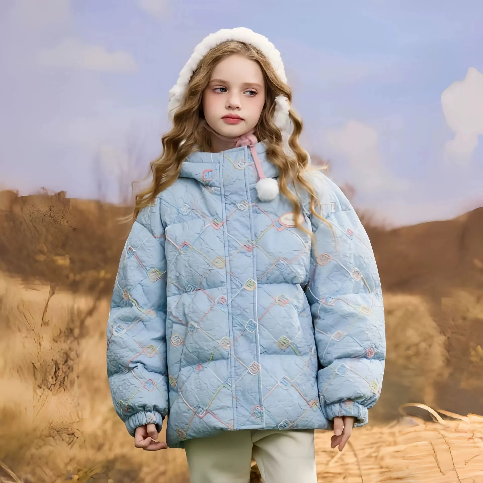 -30 ℃ Пуховая хлопковая куртка с цветочным принтом для девочек от 5 до 12 лет, зимняя новая стильная детская куртка с капюшоном, утепленная парка принцессы, 120-170 см