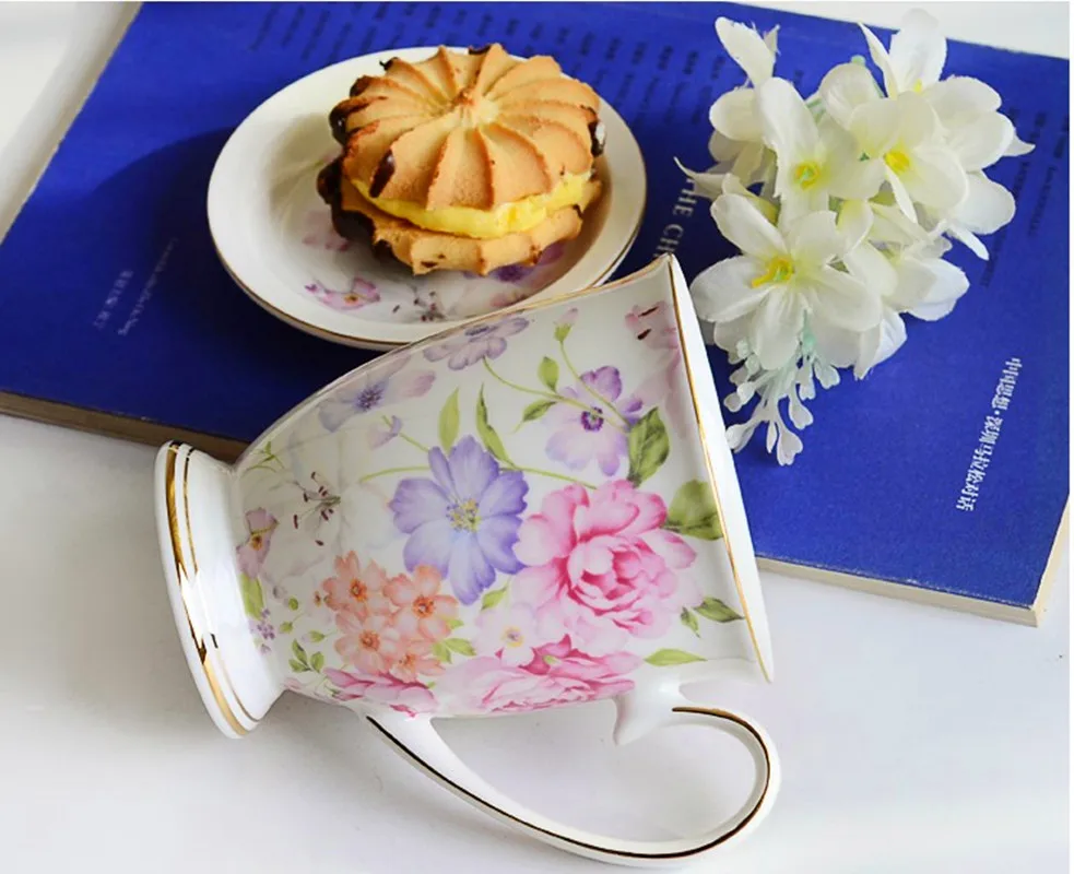 300 мл кофейная кружка из костяного фарфора, Подарочная, для кафе, с цветочным рисунком, креативная керамическая чайная чашка, винтажная чайн...