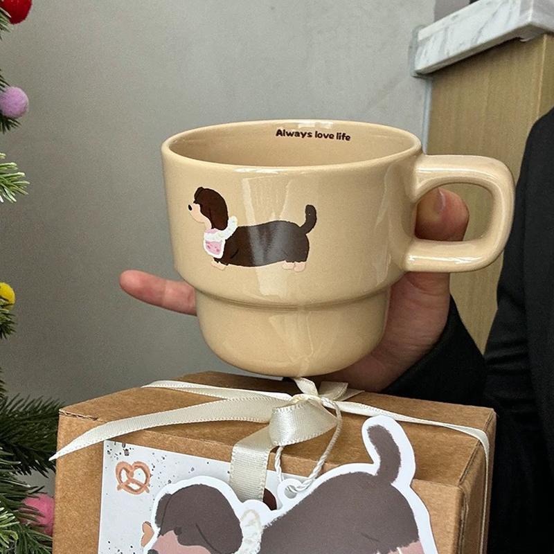 300 мл милая такса собака кофейная кружка керамическая чашка детская фарфоровая чашка чашка для завтрака чашка посуда подарок для влюбленных друзей 201-300ml хаки
