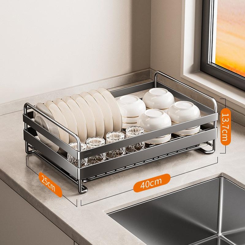 304 Нержавеющая сталь Кухонная сушилка для посуды Многофункциональный держатель для хранения Полка для слива на столешницу Сушилка для посуды серый