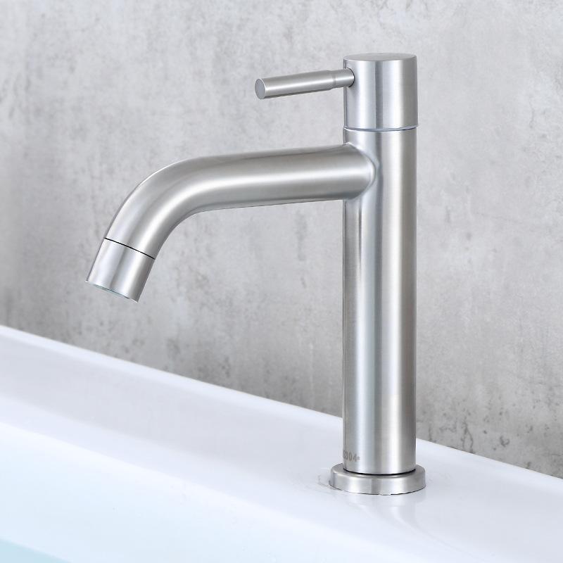 304 Нержавеющая сталь Одинарный смеситель для холодной раковины Умывальник для ванной комнаты Смеситель для умывальника между платформами