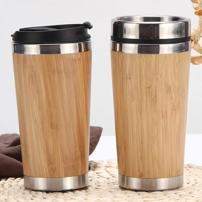 304 нержавеющая сталь Изолированная чашка бамбуковая оболочка Автомобильная чашка двухслойная теплоизоляция Удобная кружка кофейная чашка
