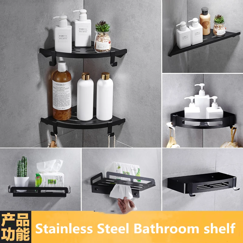 304 нержавеющая сталь ванная угловая полка с крючками для хранения унитаза черный держатель для салфеток настенная Полка Корзина для душа лоток