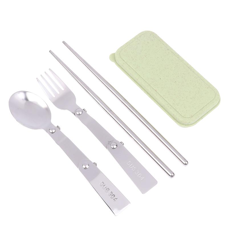304 нержавеющая сталь мини портативная ложка вилка палочки для еды набор столовых приборов с ящиком для хранения для походов кемпинга принадлежности для приготовления пищи зелёный