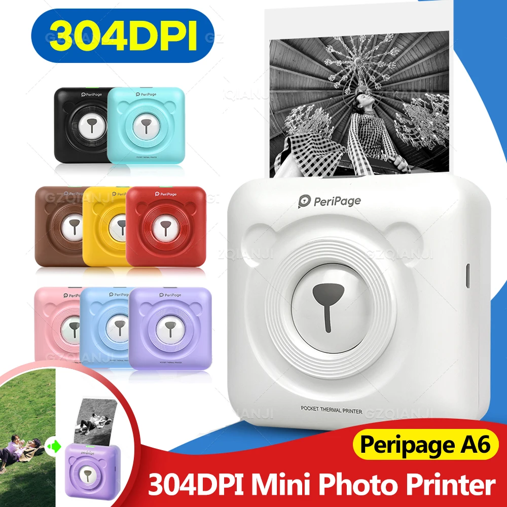304dpi Peripage A6 Mini Pocket Printer Bluetooth Thermal Photo Printer Wireless Mobile Phone Android IOS Printing for Gift
