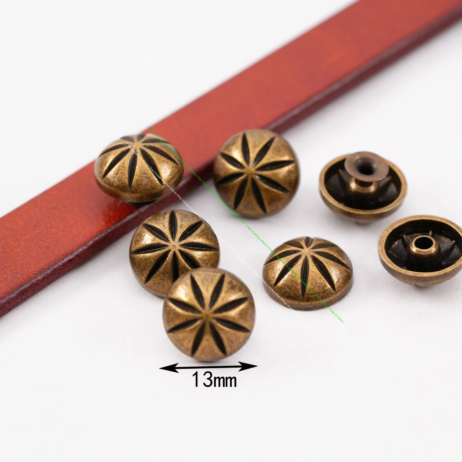 30pc 13MM COPPER DIY LEATHER CRAFT FLORAL ENGRAVED BELT CONCHOS RIVET STUD DECOR
