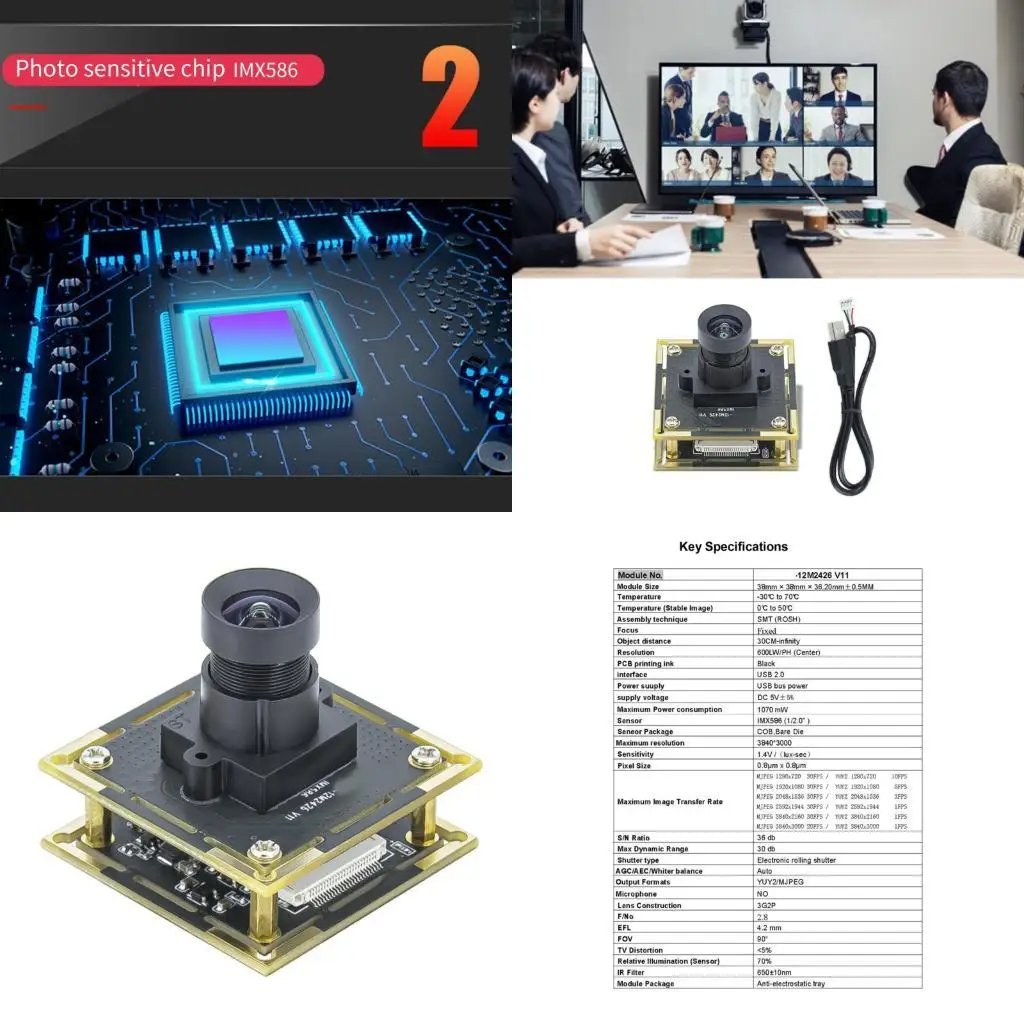 31BA 1Set IMX586 Sensoring Camera Module Not Distortion Manual Focused 90 Degree FOV USB2.0 Connection