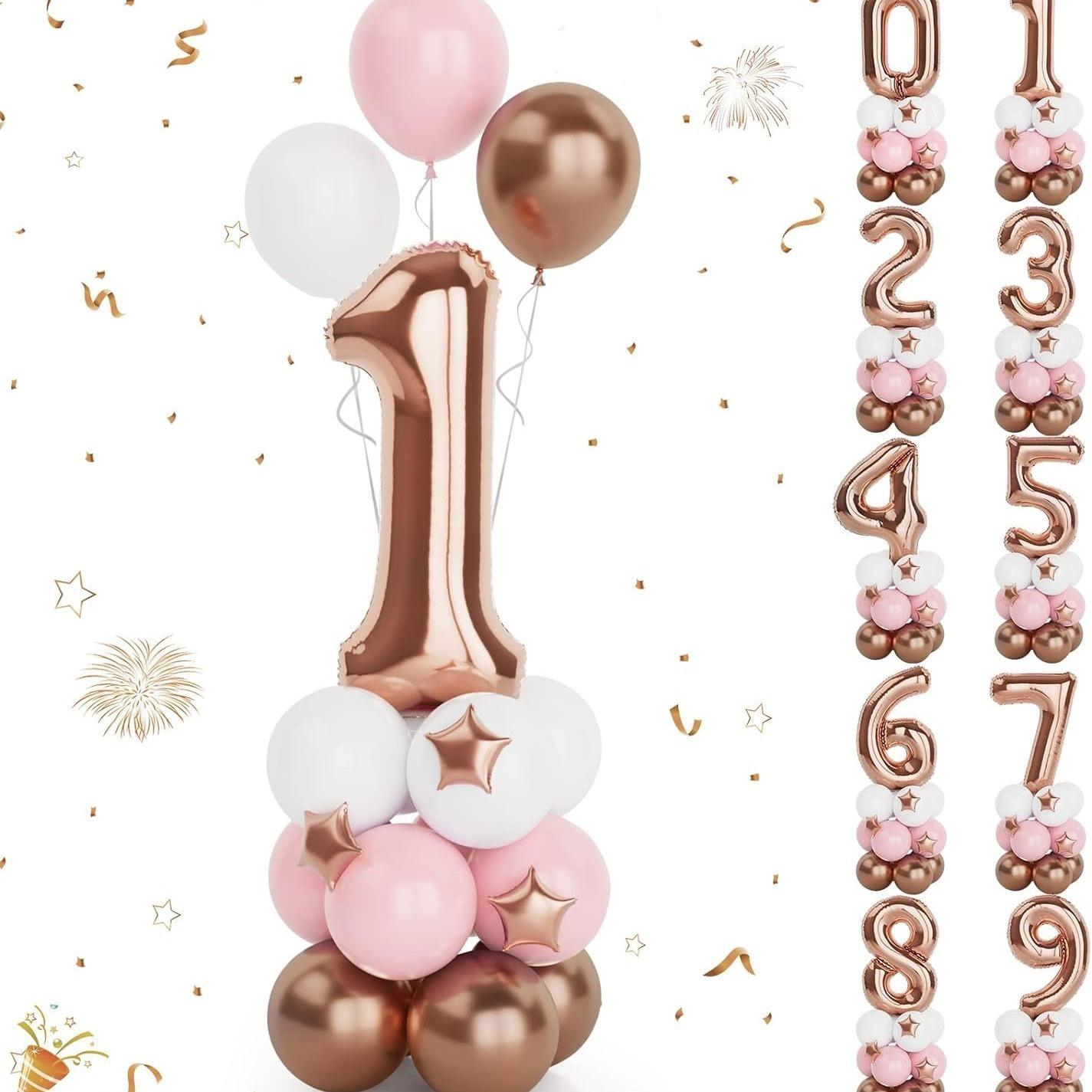 32-дюймовые шары-цифры от 0 до 9 розового золота, мини-корона розового золота, принадлежности для украшения на день рождения для 1-го дня рождения, дня рождения женщины 1 розового золота