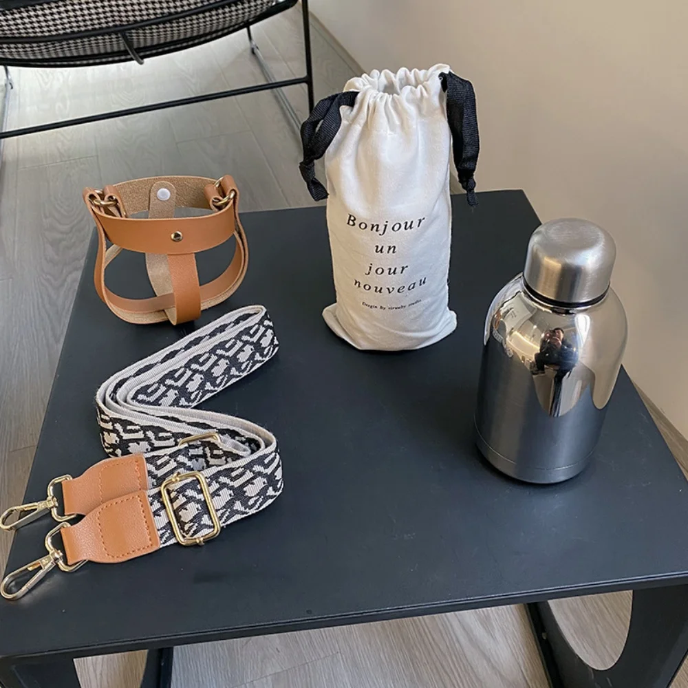 320 мл зеркальная поверхность, нержавеющая сталь 304, вакуумная изоляционная бутылка для воды с веревкой и сумкой для бутылок, дорожный термос для девочек