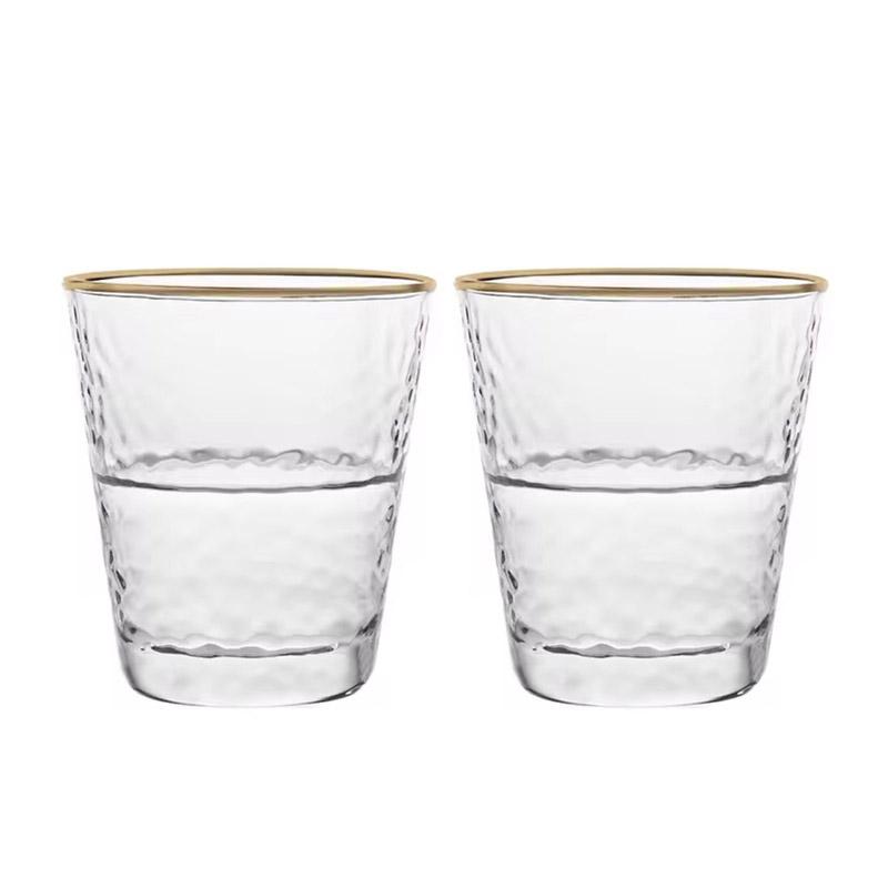 330 мл/340 мл Роскошная стеклянная чашка с золотым краем Прозрачные чашки для сока, напитков, холодных напитков Бокал для вина с узором «молоток» Изысканные подарки 2pcs