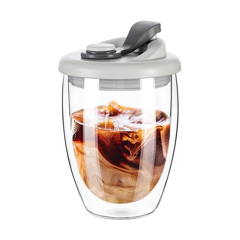 350 мл/450 мл Двойная стеклянная чашка Прозрачная кружка для чая и кофе с крышкой из силикагеля Кухонная чашка для молока и напитков Кофейная чашка Посуда 350-450ml