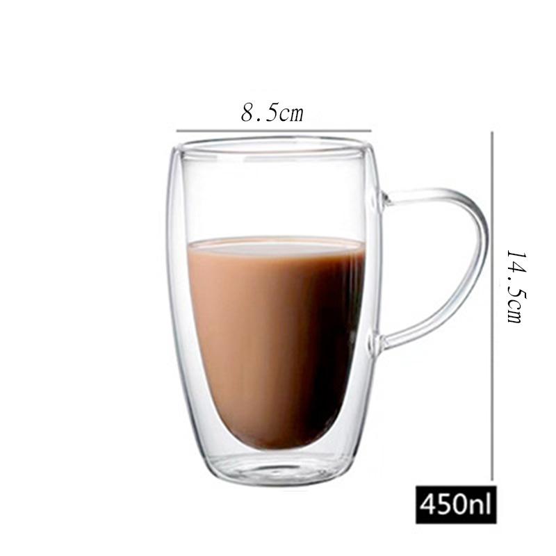 350/450 мл Кружки для кофе из стекла с двойными стенками Изолированные прозрачные чашки из боросиликатного стекла с ручкой для сока, молока, чая для подарков 350-450ml