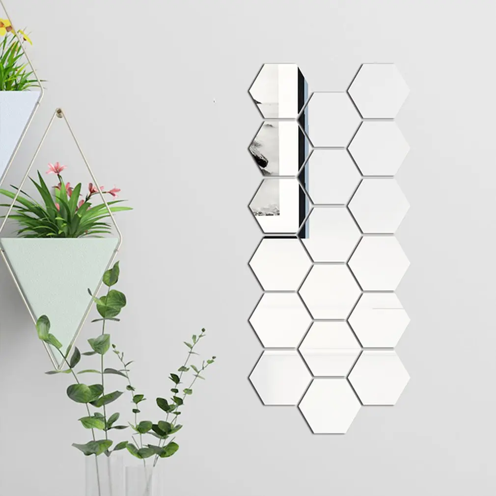 36 шт. Акриловые Настенные Стикеры съемный шестиугольная клей зеркало плитка Спальня офисные крыльца зеркало настенное Стикеры s украшения ...