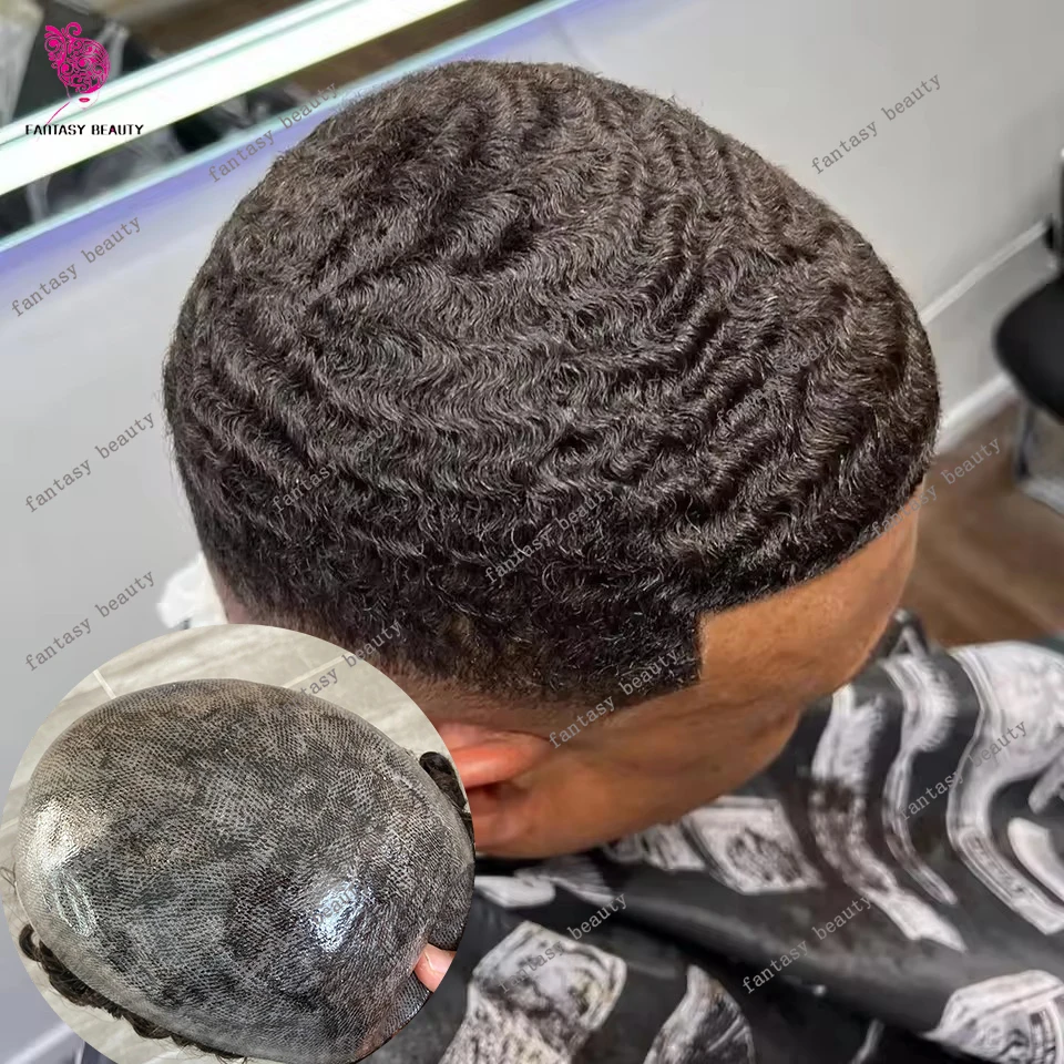 360 Волны Афро Мужчины Человеческие Волосы 12 мм Прическа Супер Прочная Кожа Серый Черный Мужской Парик Центр Корона Африка Мужской Протез Волос