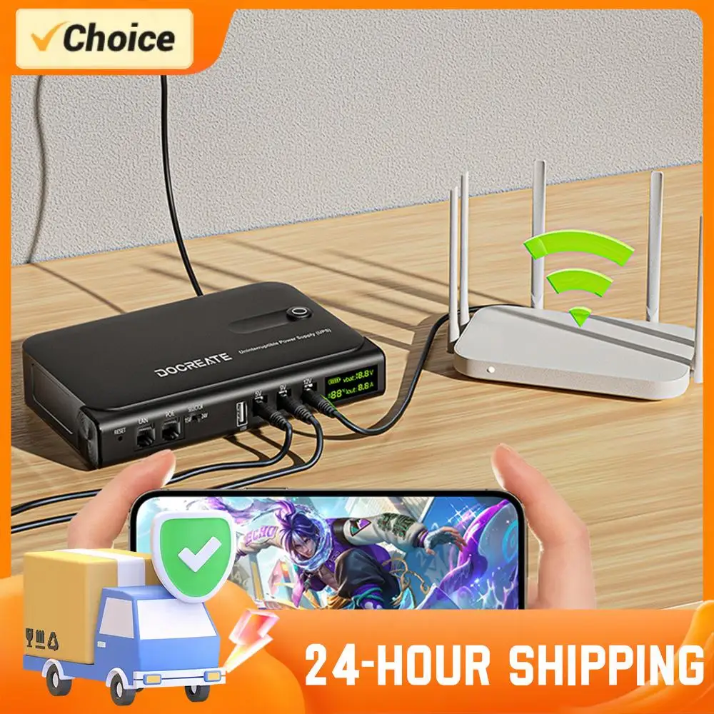 36W UPS Uninterruptible Power Supply Replaceable Battery LED Display Instant Seamless Power Switch for Router Security Camera