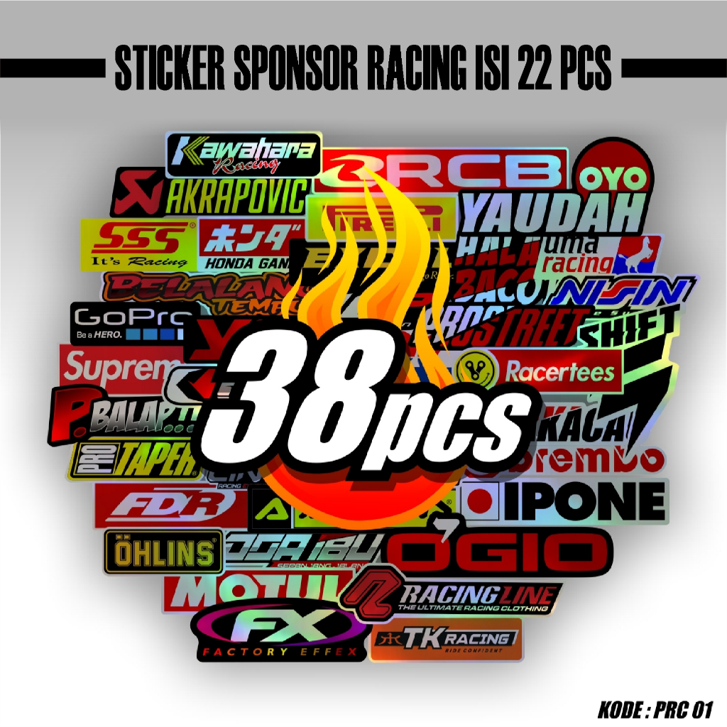 38 PCS STIKER PACK RACING VINYL HOLOGRAM PELANGI PRINT CUT YZPRC01