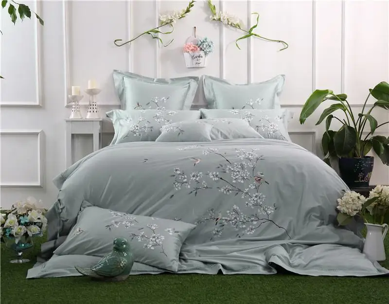 39 вышивка роскошные постельные принадлежности набор Queen/King Размеры серый Коло цветочный Комплект постельного белья пододеяльник простынь ...