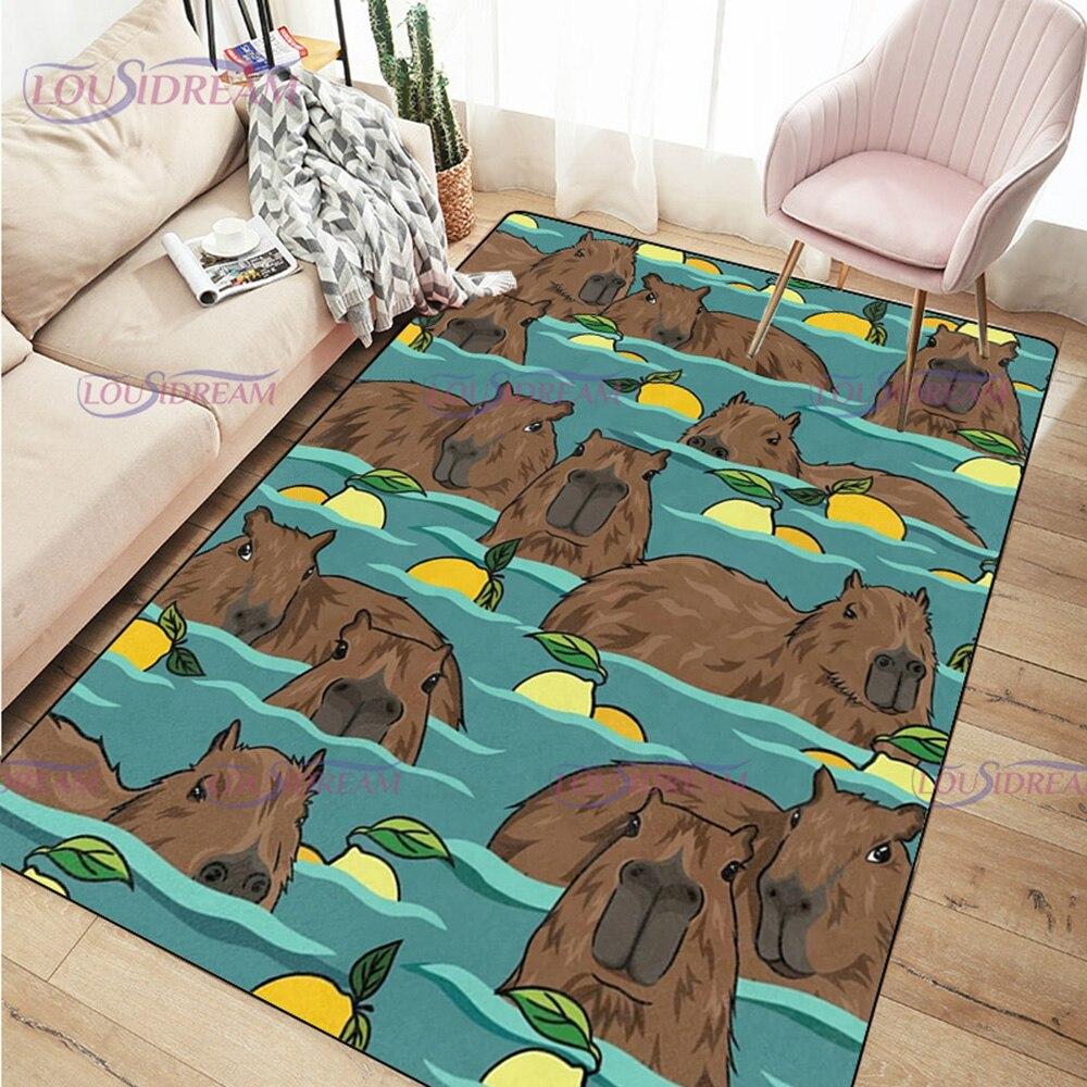 3D Анималистический принт Симпатичные коврики из капибары Ковер для ванной комнаты Нескользящие ковры для домашнего декора для гостиной Коврик для спальни