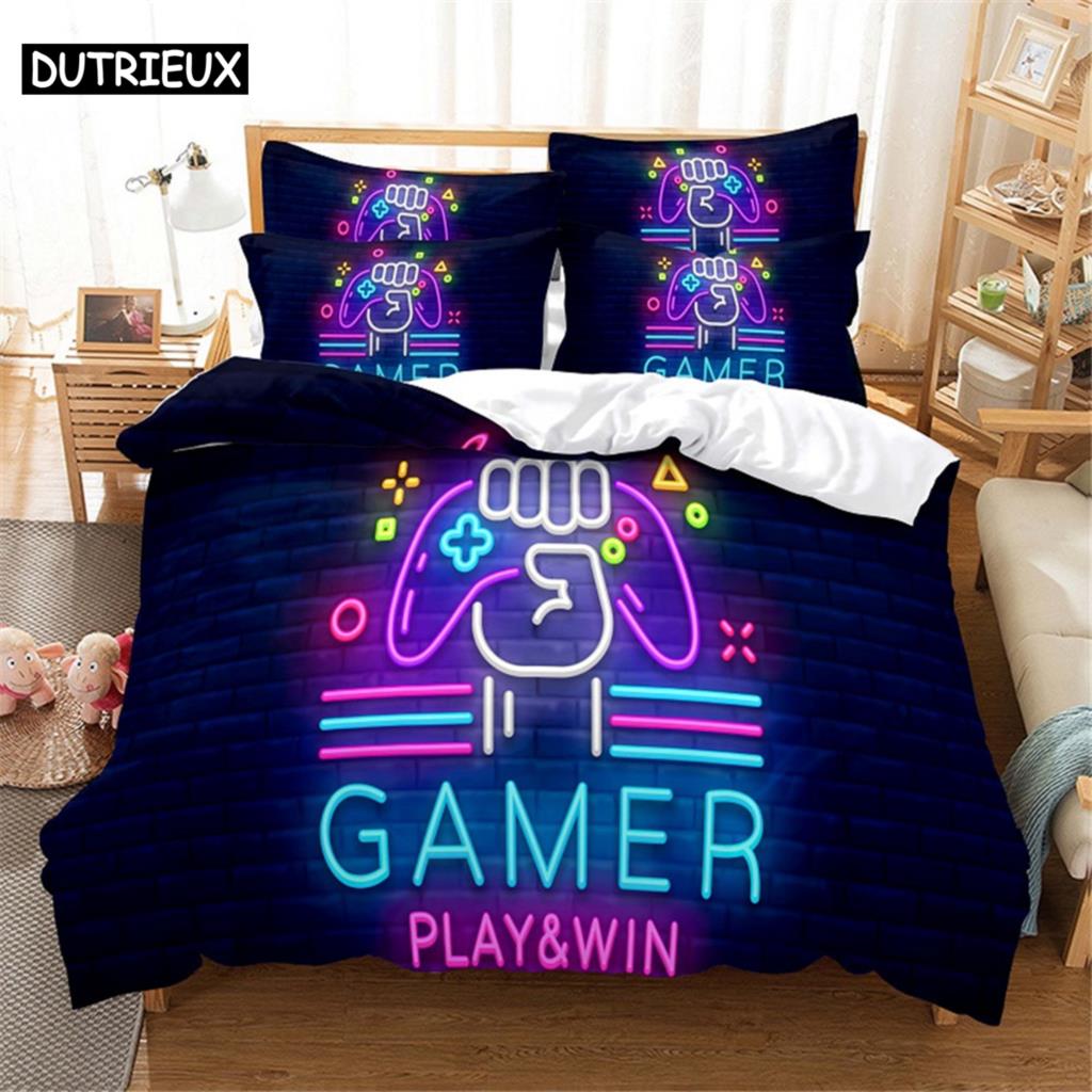 3D Игровой Постельный Комплект Queen Постельное Белье Комплект Пододеяльника Постельный Комплект Покрывало Хлопок Queen Спальня Покрывало Комплект Постельный Комплект Постельное Белье EU single(135x200cm)&set