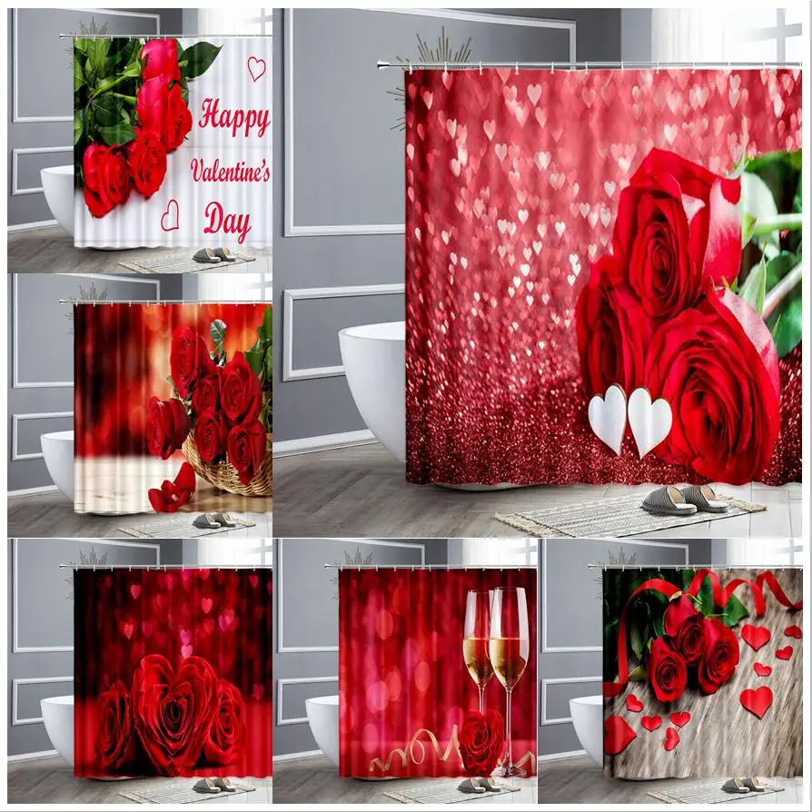 3D Красная роза, цветок для душа, День Святого Валентина, парные лепестки, ткань из полиэстера, декор для ванной