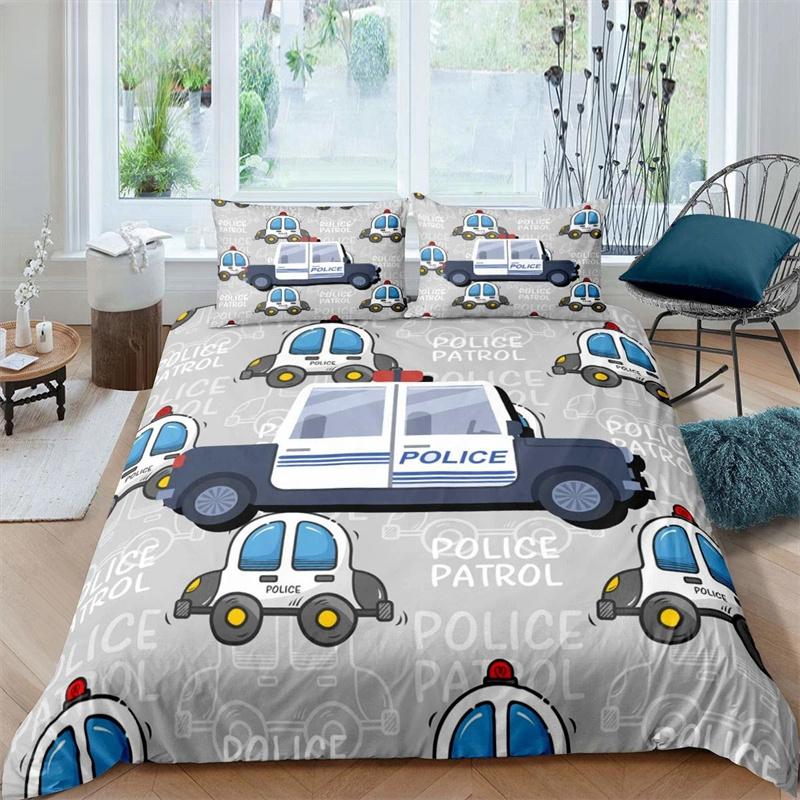3D Пододеяльник Король Королева Мультяшный Автомобиль Комплект Постельного Белья Детский Мальчики Синий Серый Транспортные Средства Аварийного Реагирования Полиэстеровый Чехол для Одеяла 70x133cm 2pcs