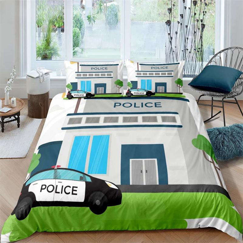 3D Пододеяльник Король Королева Мультяшный Автомобиль Комплект Постельного Белья Детский Мальчики Синий Серый Транспортные Средства Аварийного Реагирования Полиэстеровый Чехол для Одеяла EU single(135x200cm)