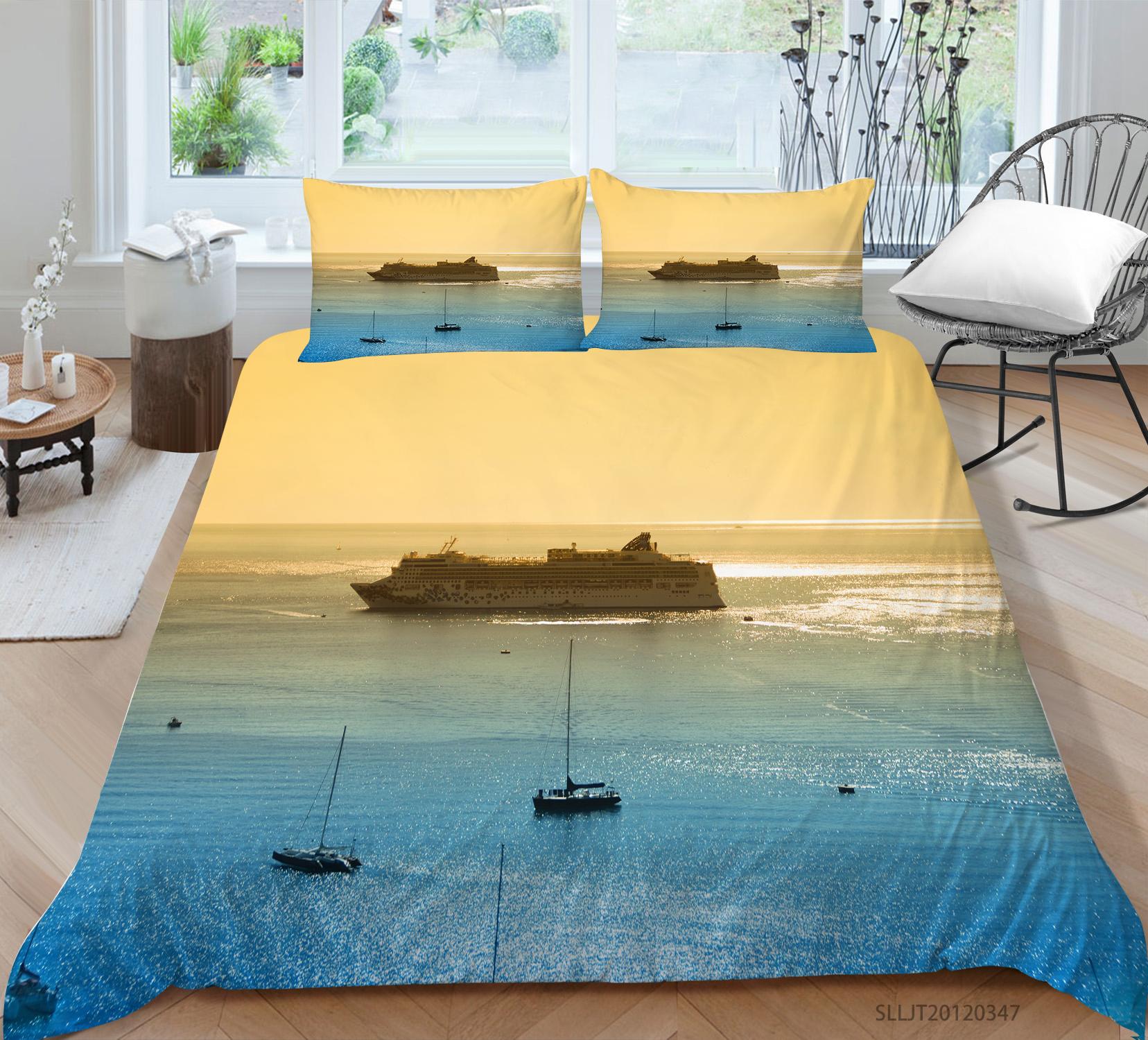 3D Постельные принадлежности Односпальная двуспальная кровать Полноразмерная наволочка с принтом корабля и пододеяльник 2/3 предмета удобного домашнего постельного белья для мальчиков и мужской комнаты EU Single 135x200cm