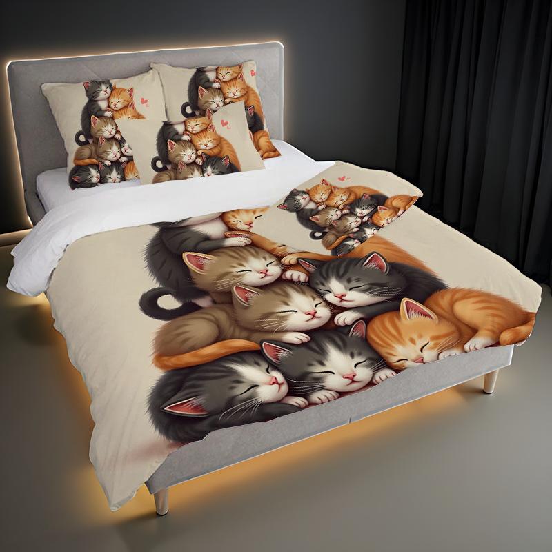 3D Цифровая Печать Постельное Белье Набор из Двух или Трех Предметов Милое Фото Семьи Кошек Полиэстеровый Пододеяльник EU single 135*200