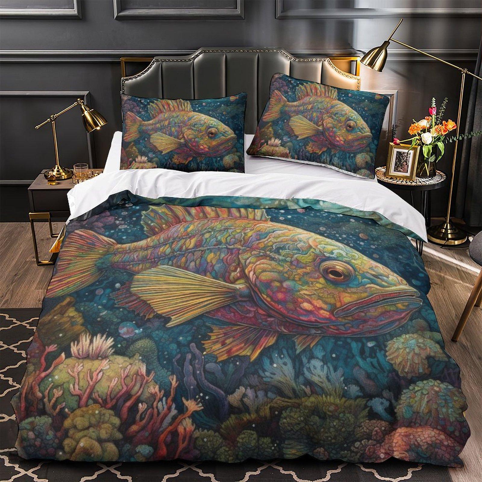 3D Цифровая Печать Цветная Серия Рыб Пододеяльник Наволочка Набор из Двух или Трех Предметов Полиэстер Шлифовка EU Single 135*200