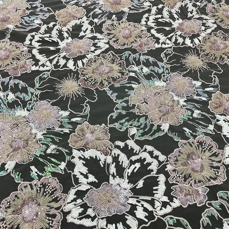 3D большая цветочная тюлевая ткань с вышивкой бисером и блестками, кружевная сексуальная кружевная прозрачная ткань для свадебного платья, декора вечернего платья