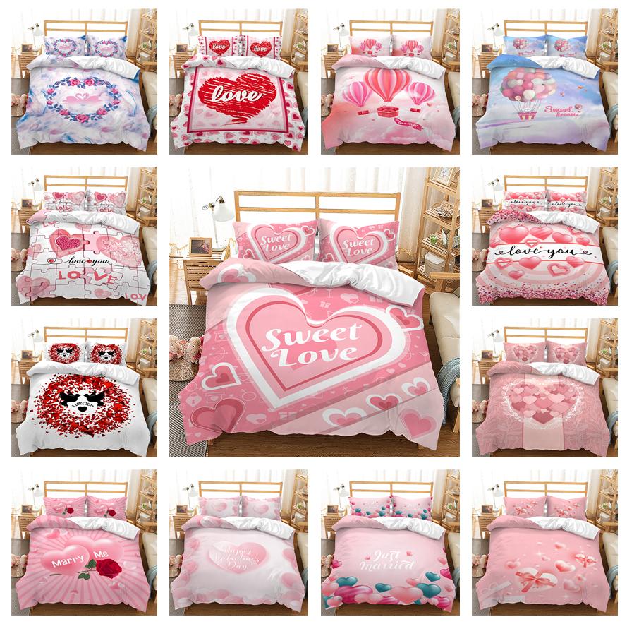 3D комплект постельного белья ко Дню святого Валентина, пододеяльник для пары, 2/3, узор любви, AU/US/UK/DE, полный размер, украшение для дома