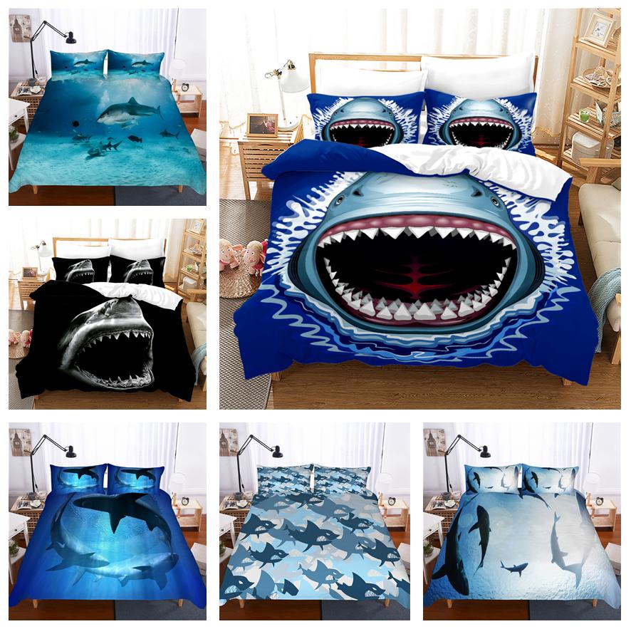 3D комплект постельного белья с изображением акулы, пуховое одеяло с морскими животными, 2/3 шт., пододеяльник для комнаты для мальчиков и подростков, роскошный мягкий быстросохнущий чехол на кровать